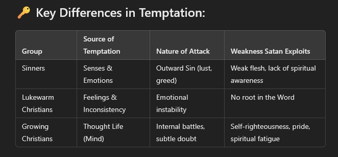 Let’s explore how temptation differs across three spiritual hearts in the same battlefield of life: